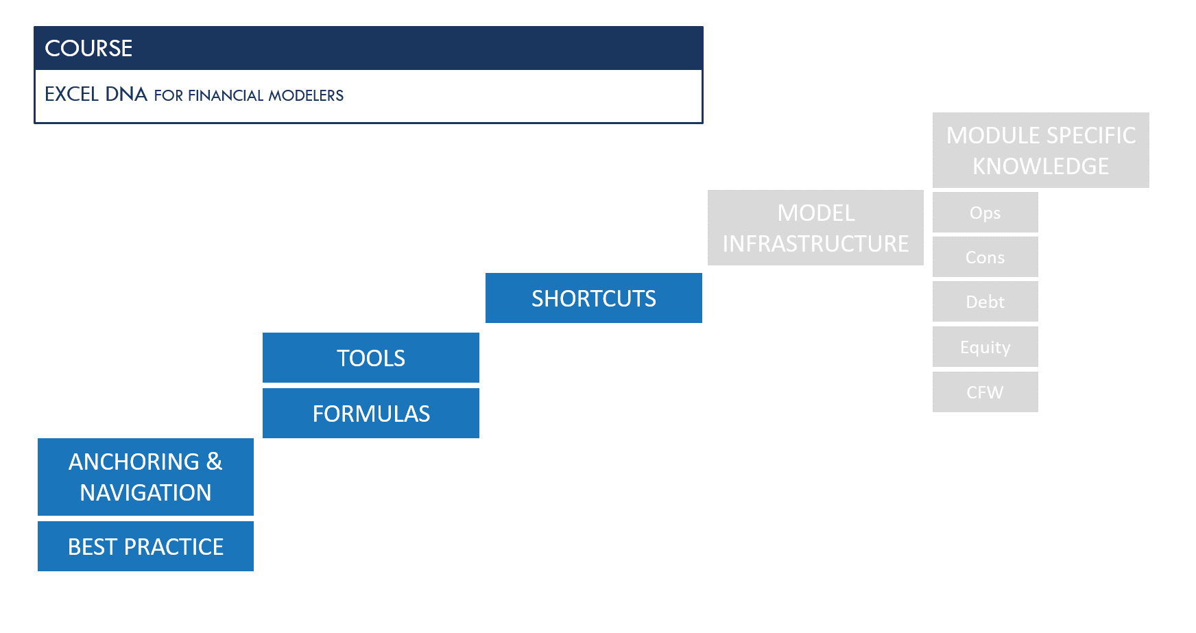 Building skills rapidly requires a deconstruction of the skill elements, and appropriate sequencing of the training in them. This course teaches you to work with the DNA of Excel and builds your competency block by block. It condenses years of learning into one day.